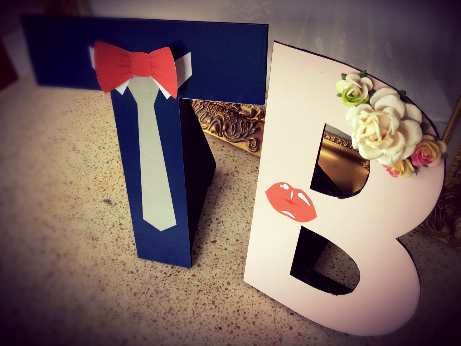 พร็อพตัวอักษรตั้งโต๊ะ ตัวย่อชื่อบ่าว&สาว ทำมือ